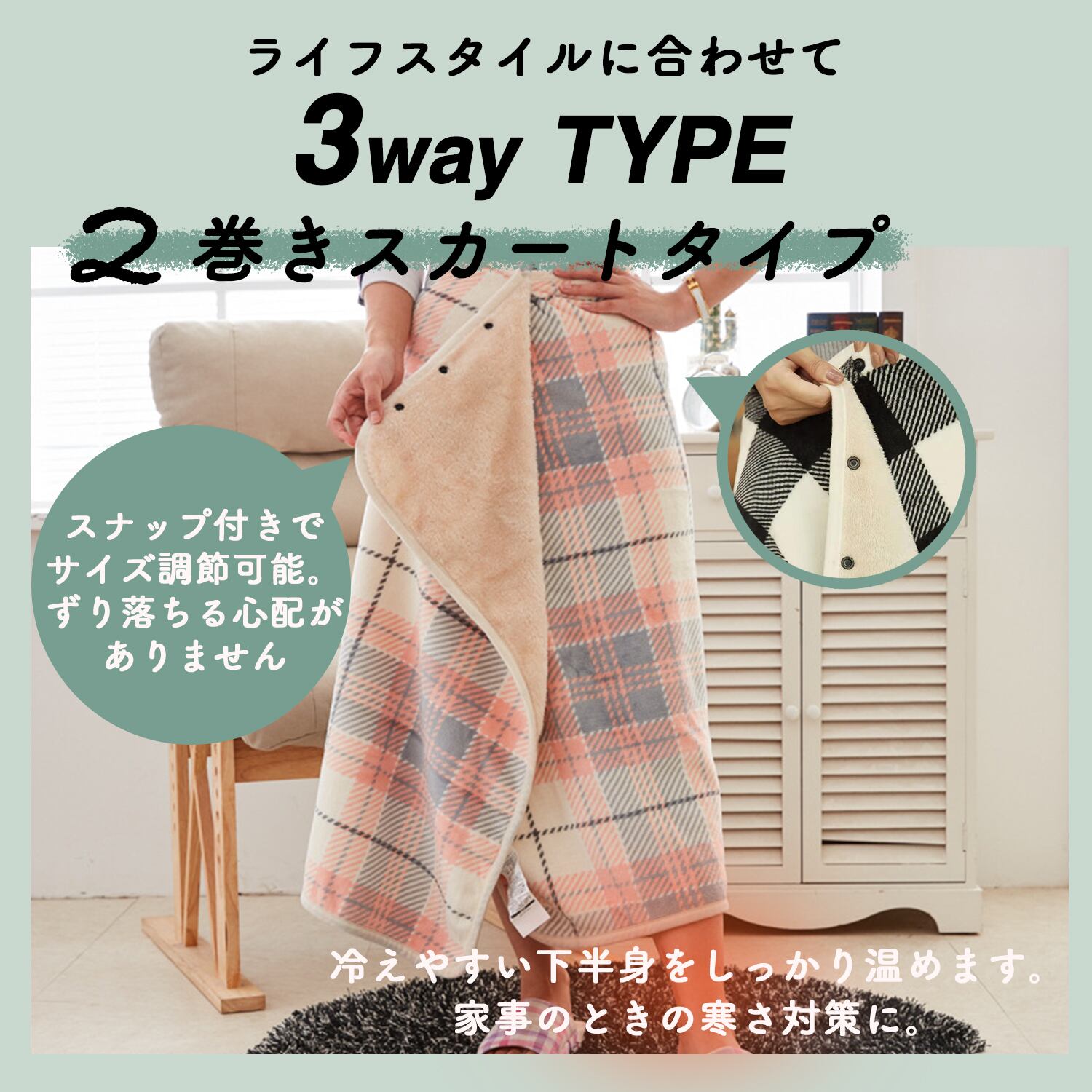 ひざ掛け、巻きスカート、ポンチョスタイルの3通りで使い方自由自在。読書や映画鑑賞の時間に定番のひざ掛けスタイル。寒い時期の家事に、下半身を温めノンストレス。調整可能なスナップ付きでずり落ちる心配もありません。