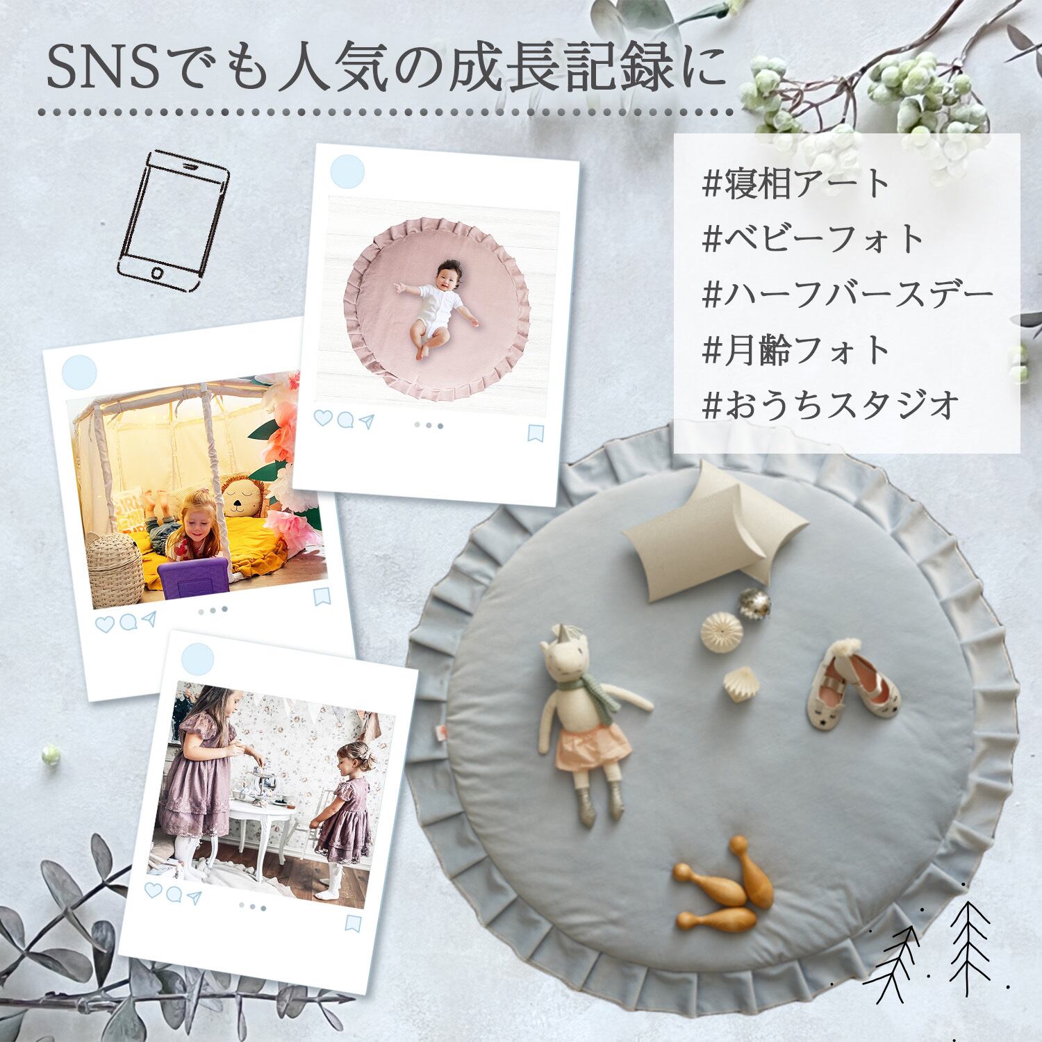 ハーフバースデーや月齢フォトなど、プレイマットに寝かせて写真を撮るだけで簡単に素敵な成長記録になります。