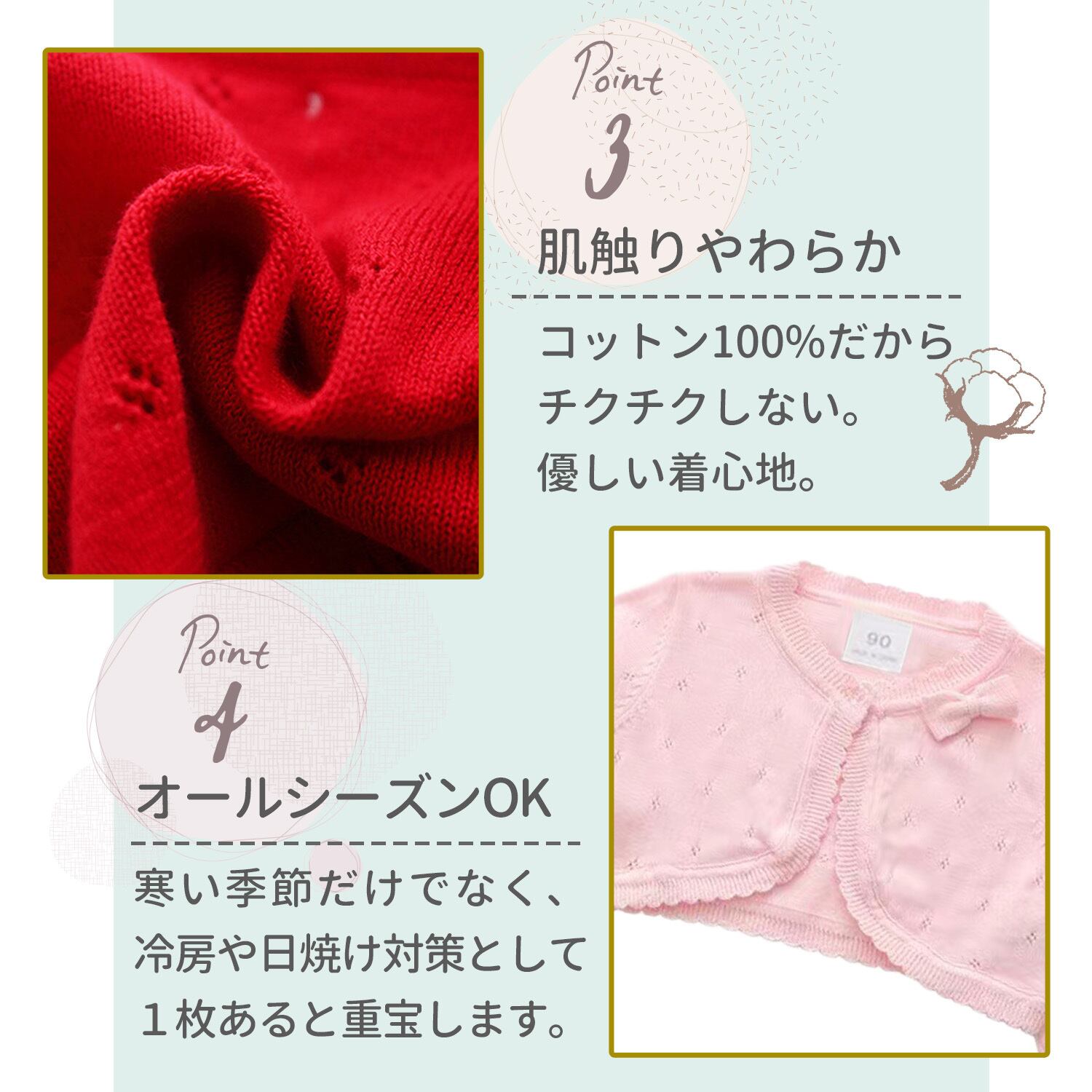 寒い季節の羽織もの以外に、室内の冷房や日焼け対策としても1枚あるととても重宝します。