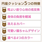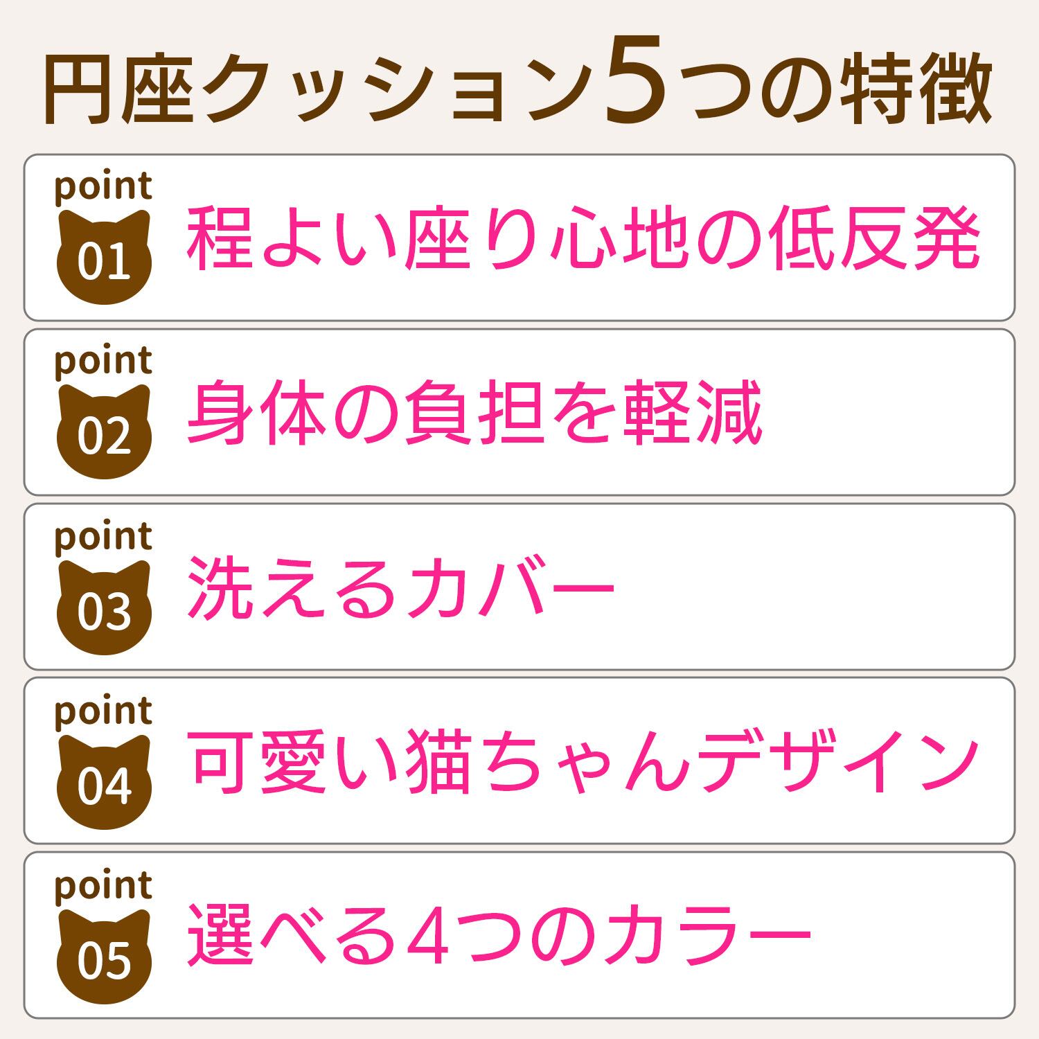 座るのがワクワクする、可愛らしい猫ちゃんデザインの円座クッションです。