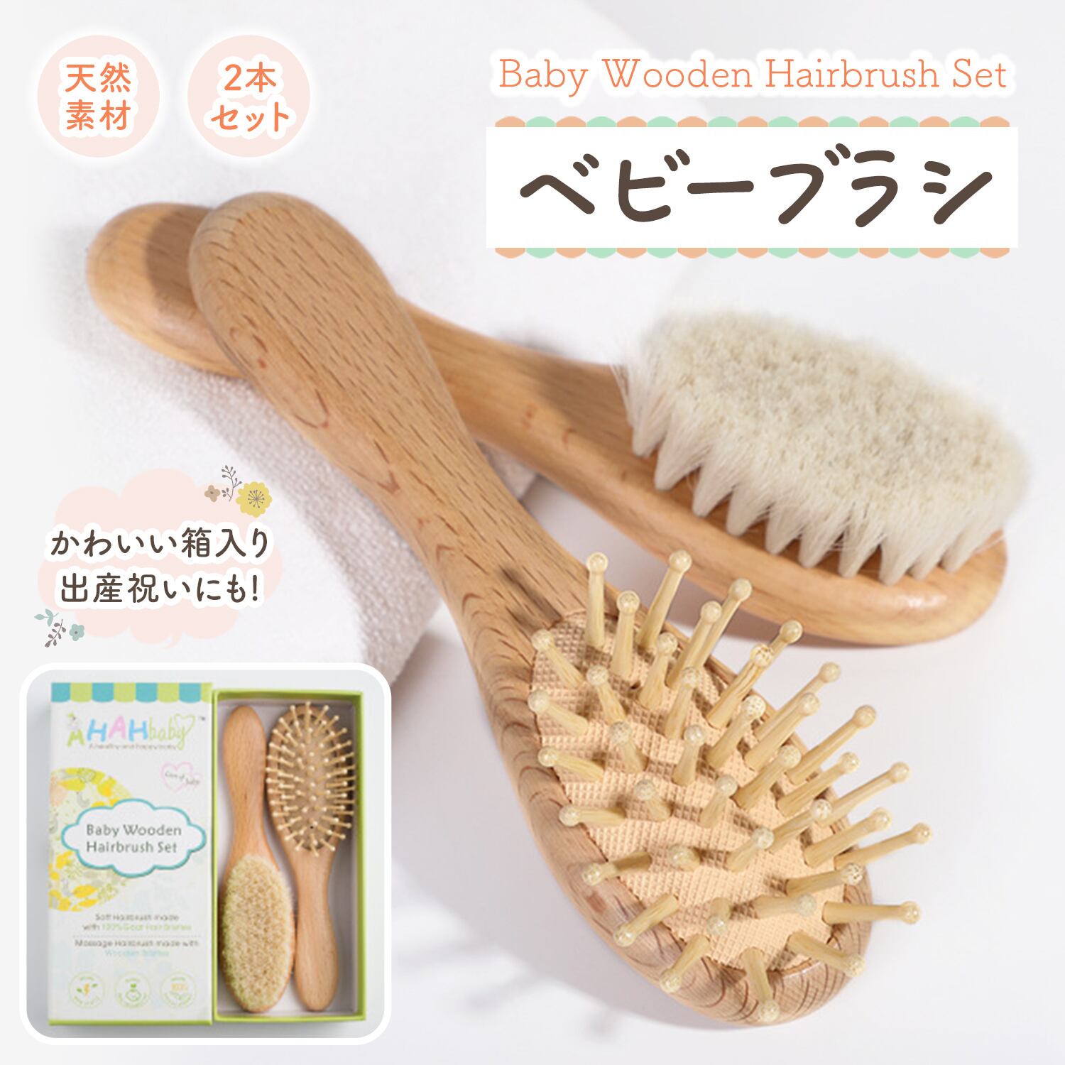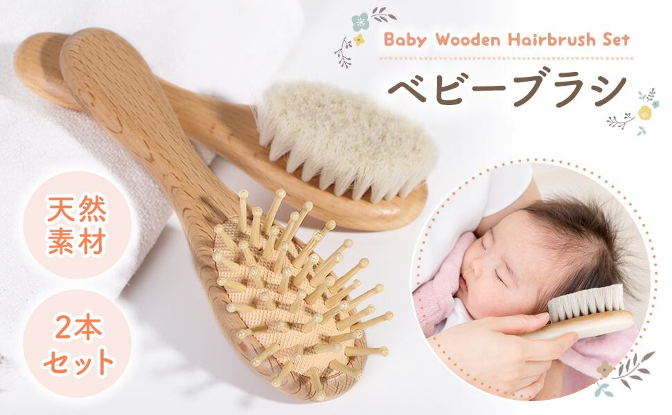 柔らかい毛先の天然毛(山羊毛)ブラシと、先端が丸く頭皮に優しいクッションブラシのセットです。