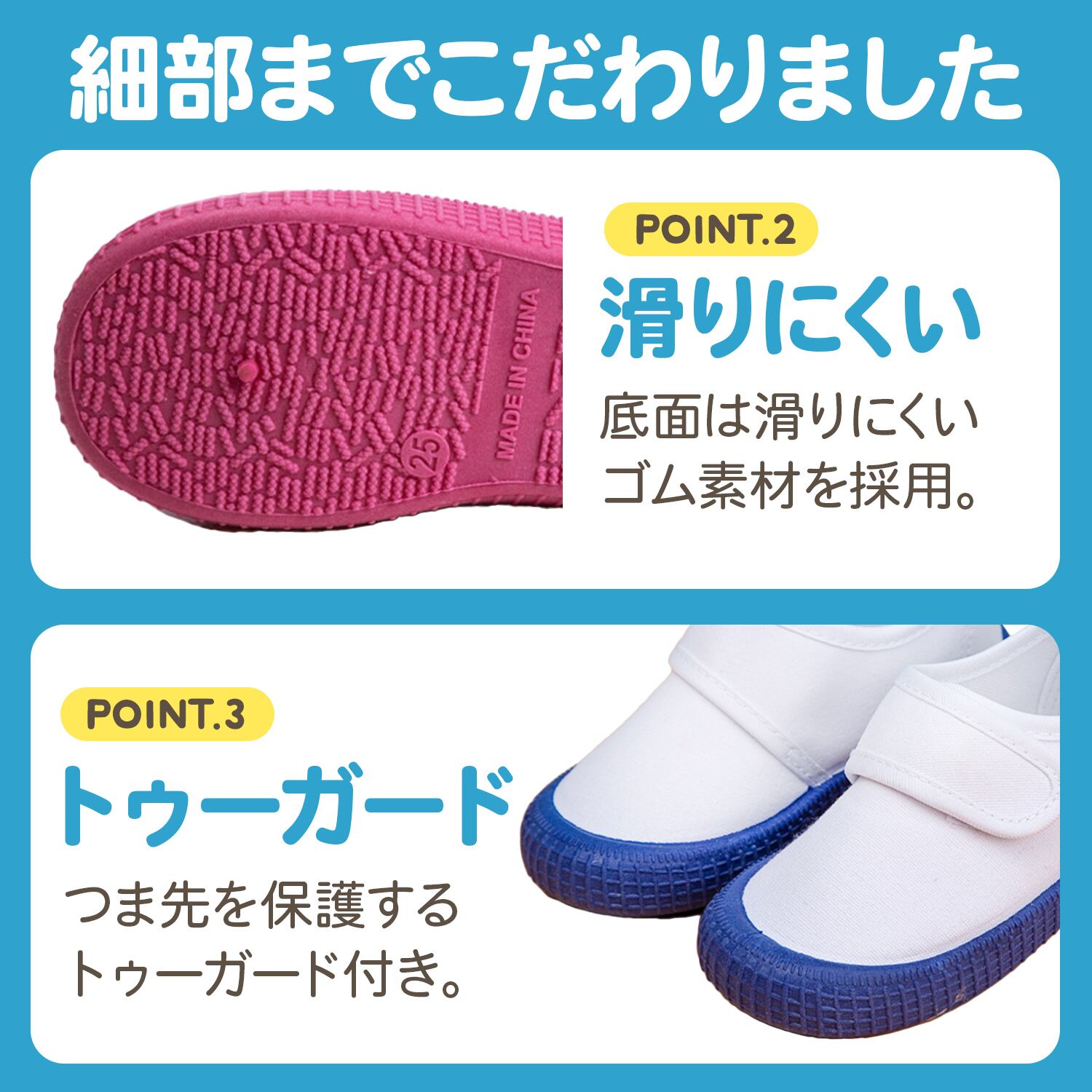 お子様の柔らかいつま先を保護するトゥーガード付き。