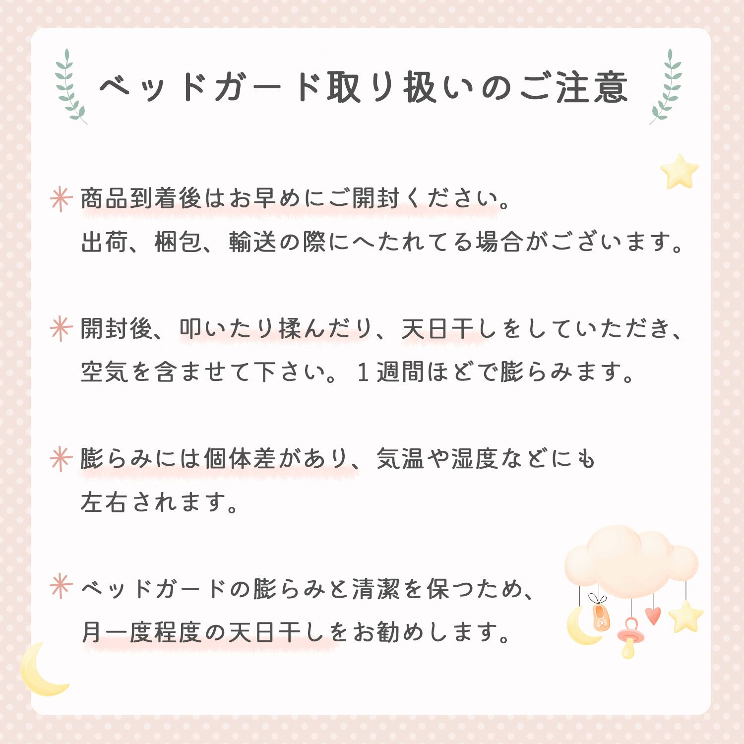 ※ベッドガードの膨らみと清潔を保つ為、月一程度の天日干しをお勧めします。