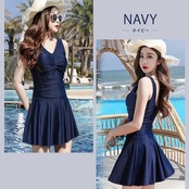 胸の下のクロスとギャザーデザインがお腹周りを引き締めた印象に。