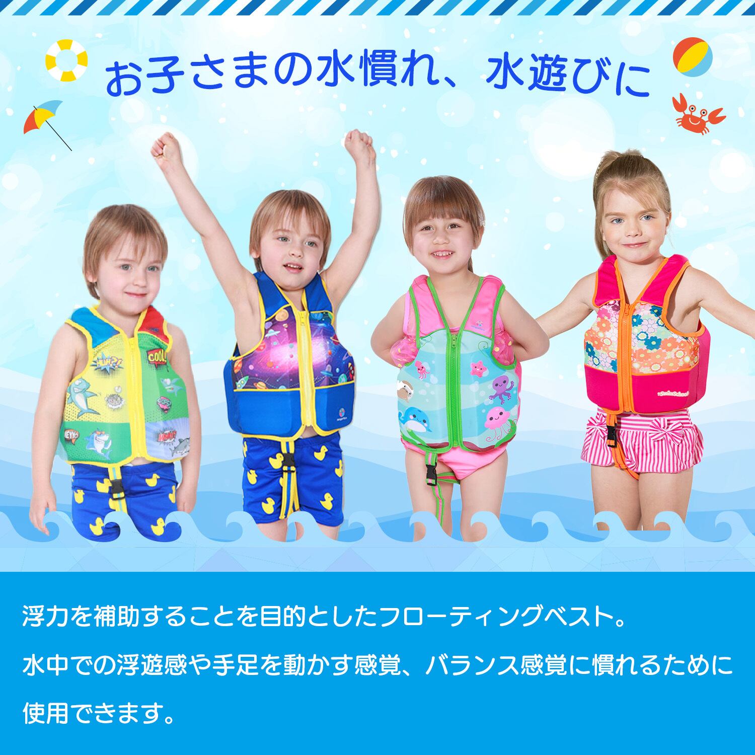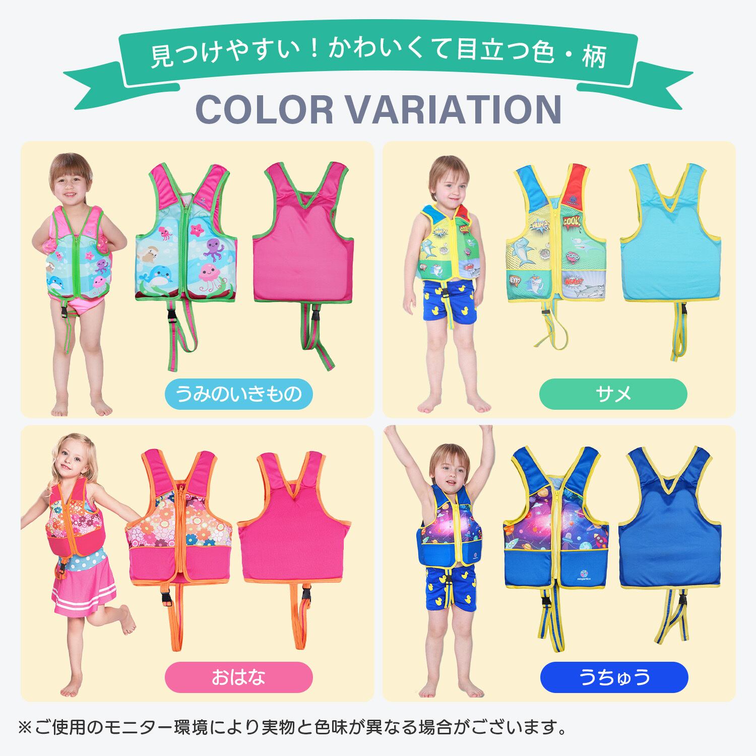 お子様が喜ぶ楽しくて可愛い柄、水遊び中の我が子を見つけやすいカラフルな柄です。