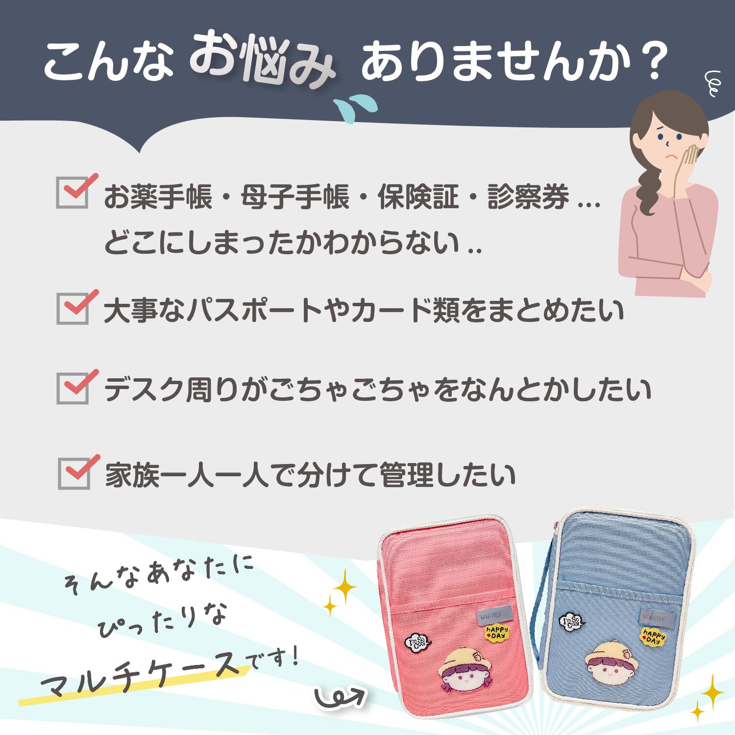 お薬手帳、診察券など、大切な書類がまとめられるマルチケースです。