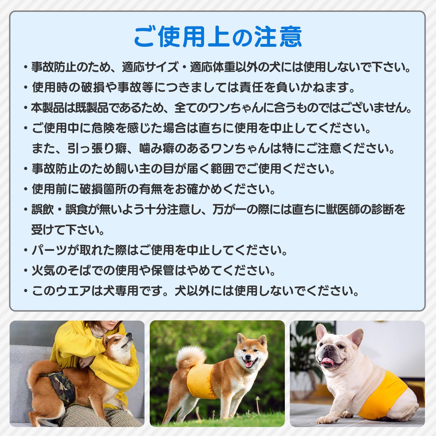 ・このウエアは犬専用です。犬以外には使用しないでください。