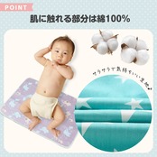 赤ちゃんに触れる表面部分はコットン100%の素材なので、デリケートな赤ちゃんのお肌にも心配なくお使いいただけます。