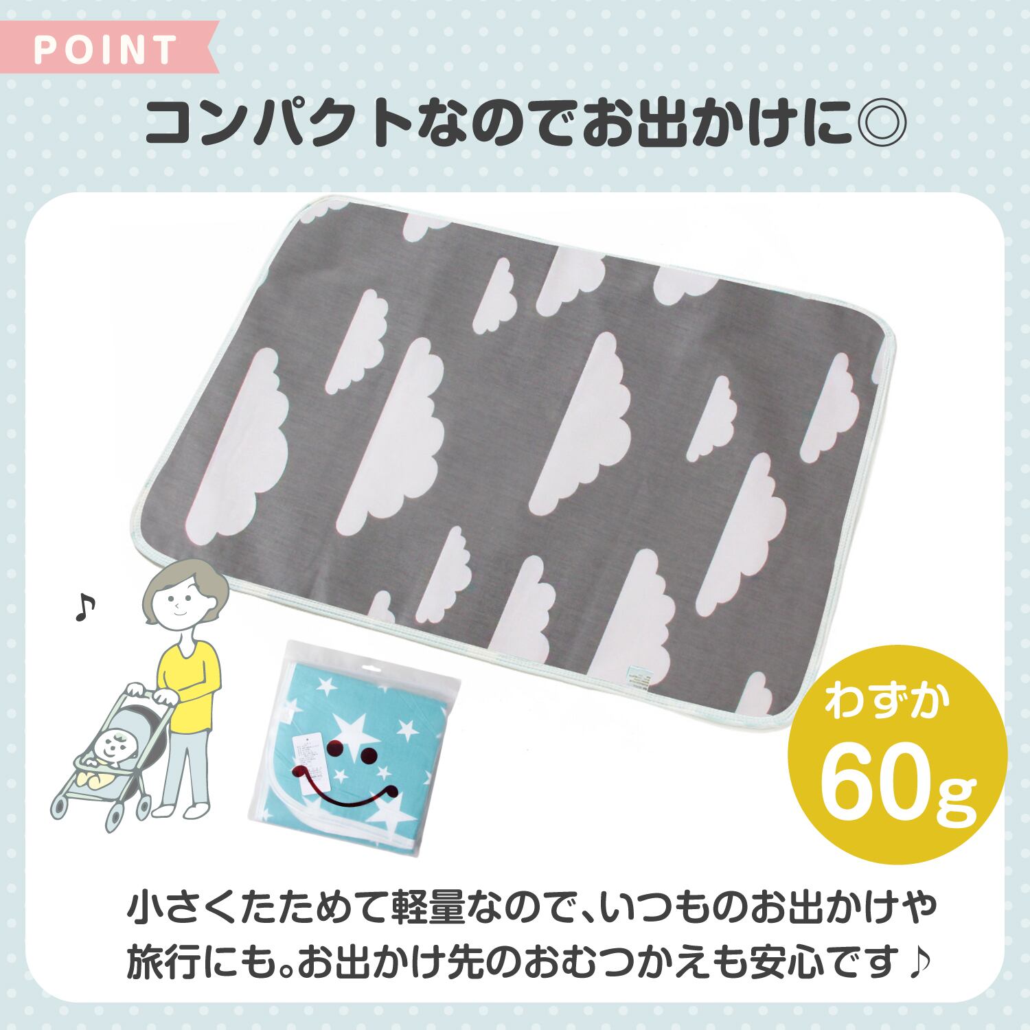 35cm×45cmとコンパクトなサイズで折りたためるので、持ち運びがしやすくお出かけ先のおむつ替えに