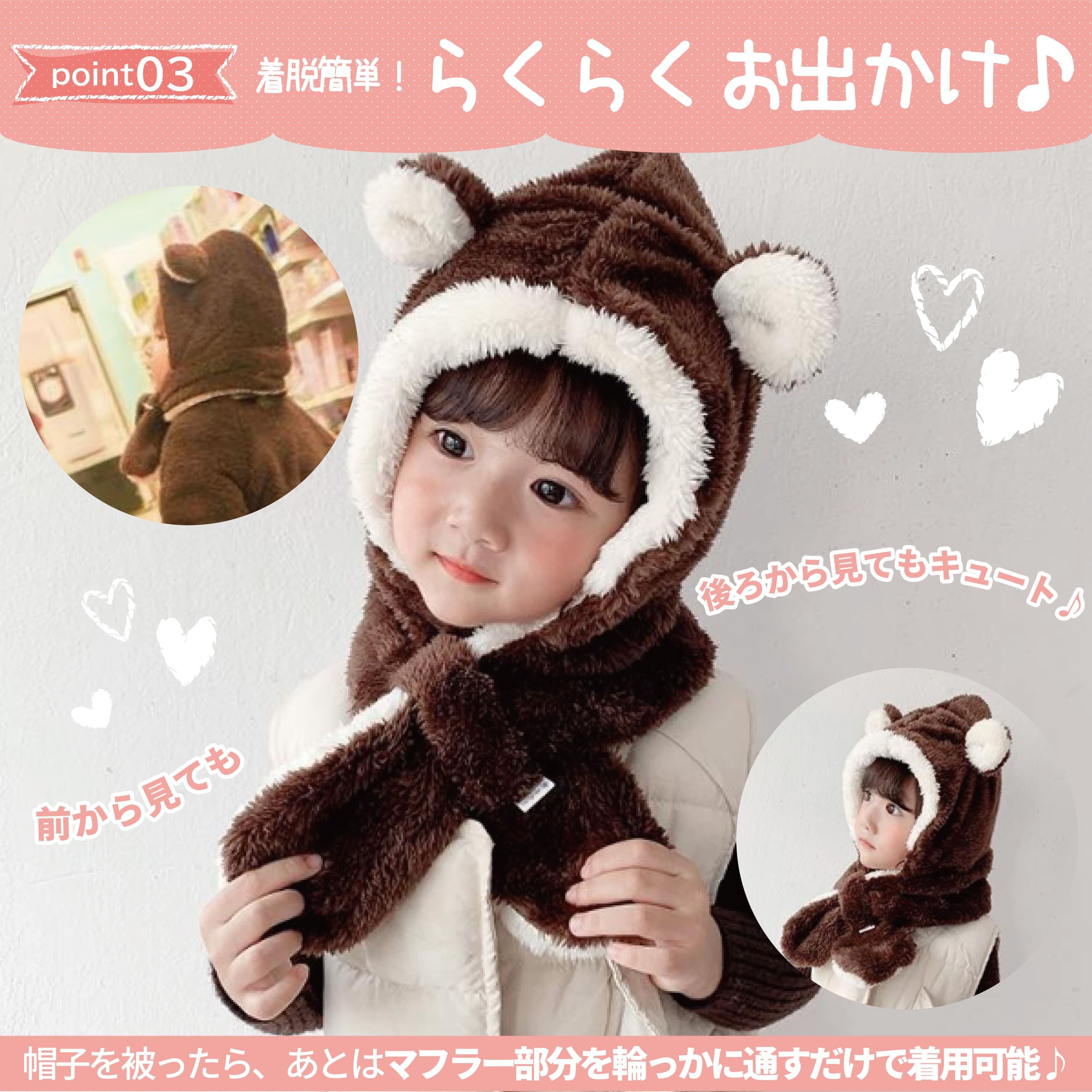 かぶるだけで耳まですっぽり隠れ、マフラー付きなのでこれ1つで寒い季節のお出かけも大丈夫♪