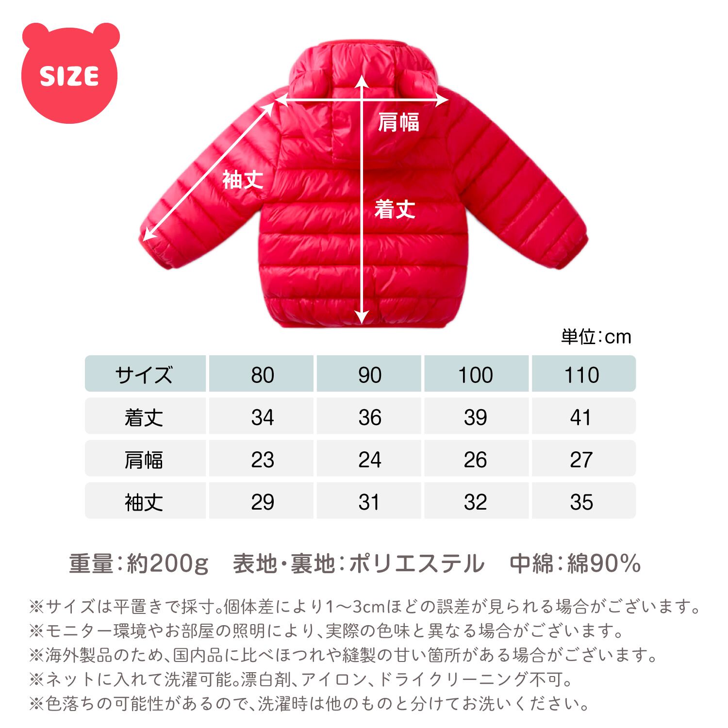 中綿入りで保温効果が抜群!冬の厳しい寒さからお子様を守ります。また、ダウンに比べてお手入れがしやすいので汚れたら自宅の洗濯機で簡単に洗うことができて衛生的!コスパ良し◎