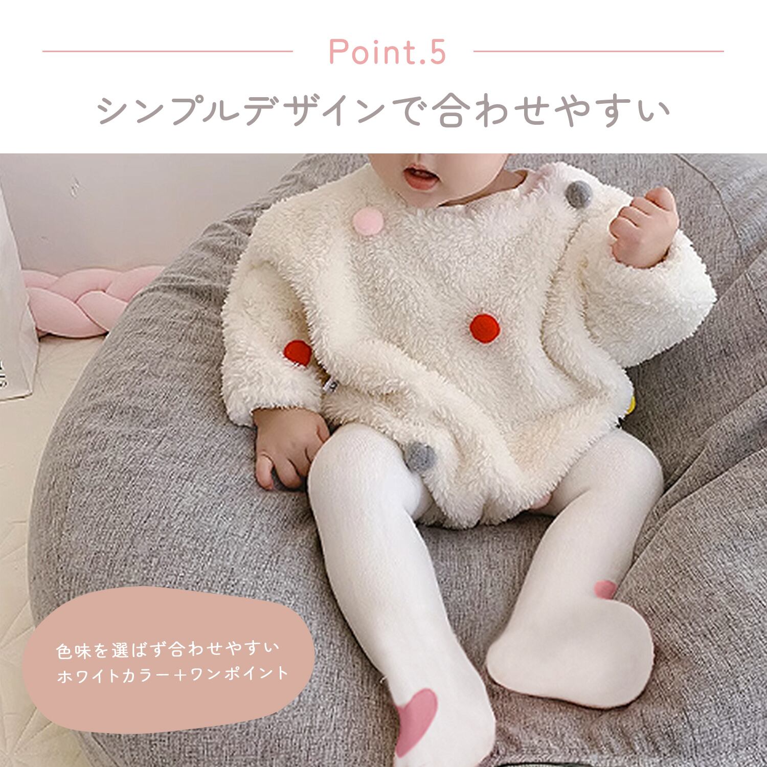 ホワイトベースのシンプルなワンポイントタイツなので、どんなトップスと組み合わせても可愛い♪