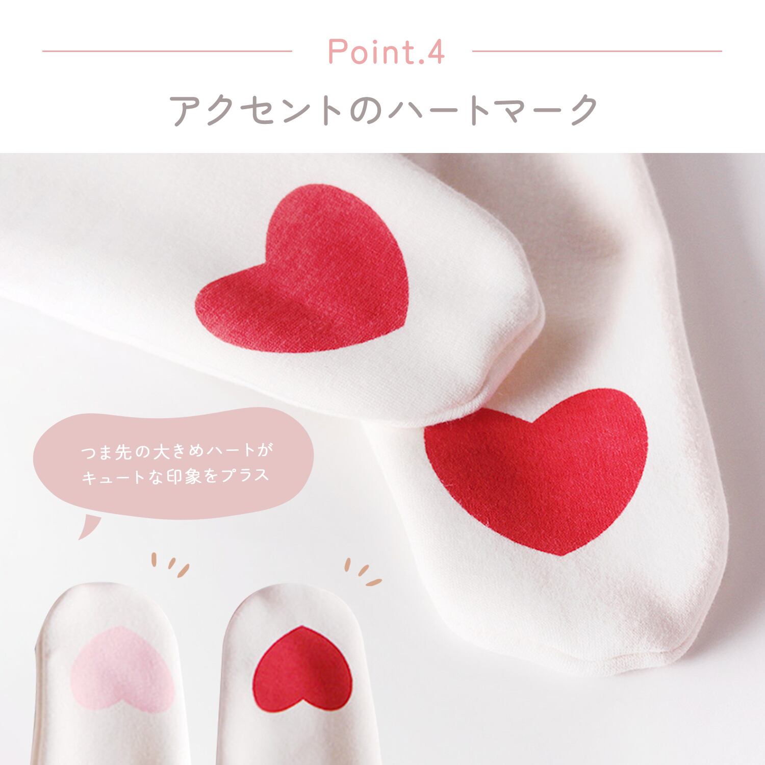 つま先の大きめハートマークがアクセントに!履くだけでコーディネートにキュートな印象を与えてくれます♪