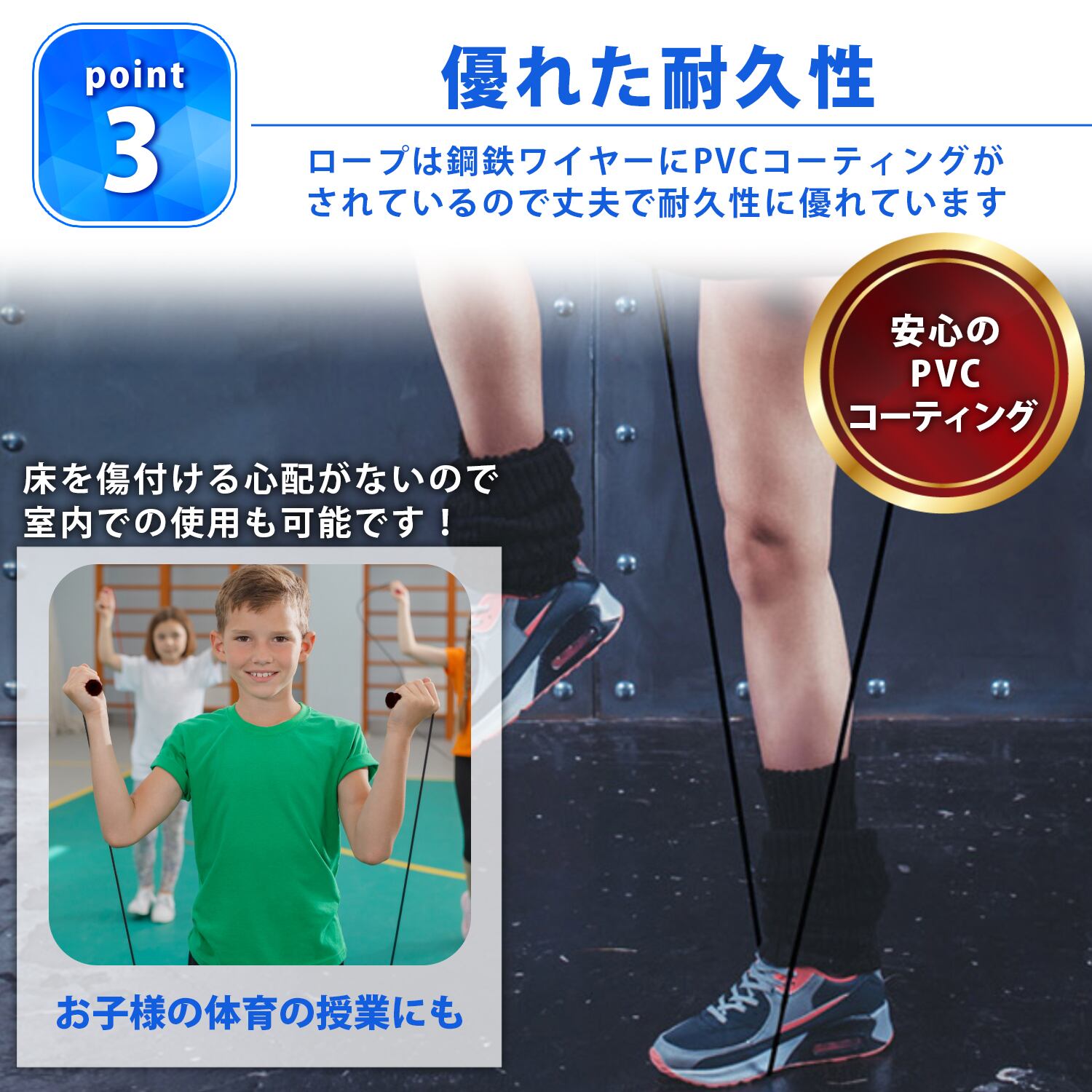 ・縄跳びは全身を使うスポーツでもあるのけがをしないよう、ご使用前はウォーミングアップを十分に行い無理のない範囲でお使いください。