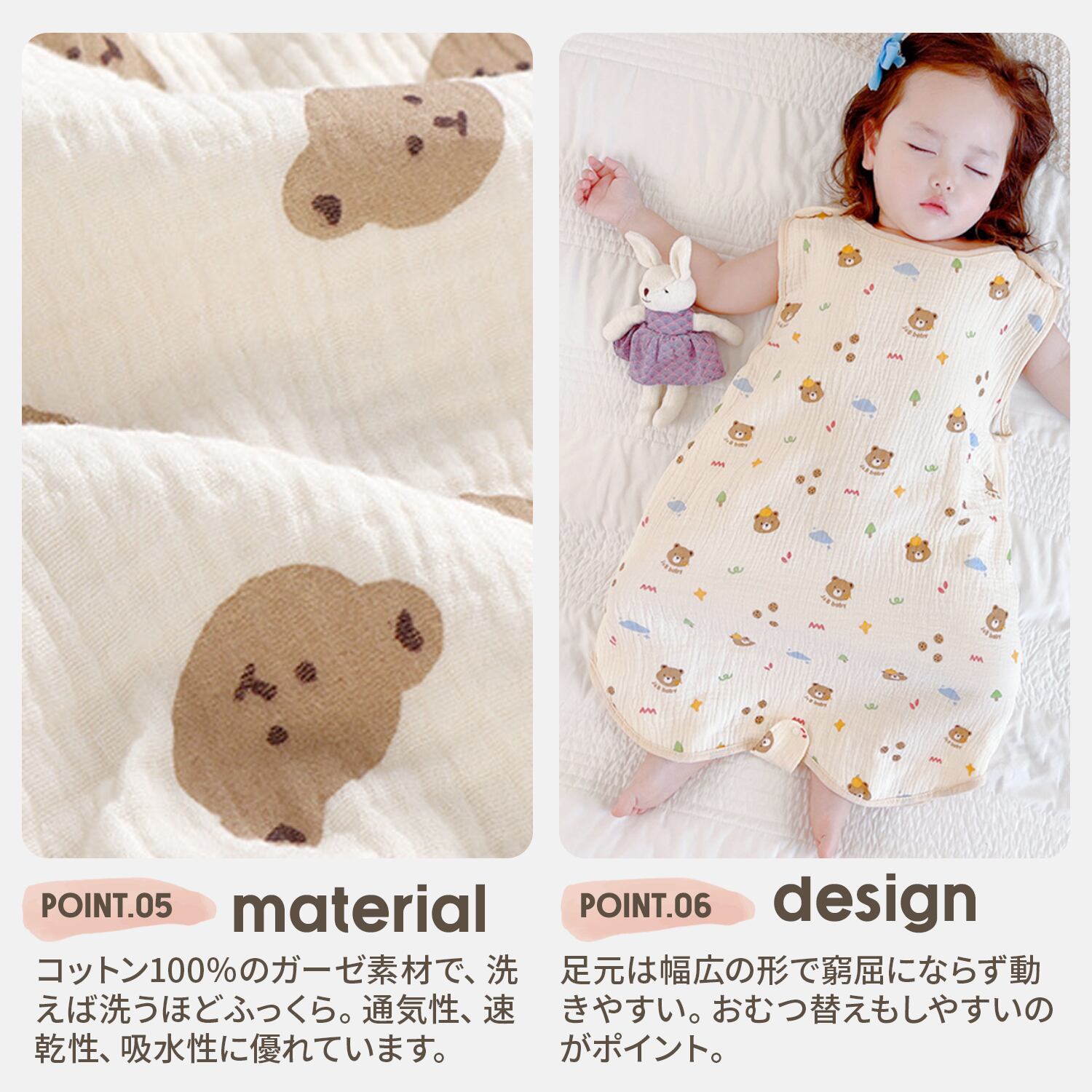 寝冷えを防ぎながらかわいく赤ちゃんをコーディネートできます。