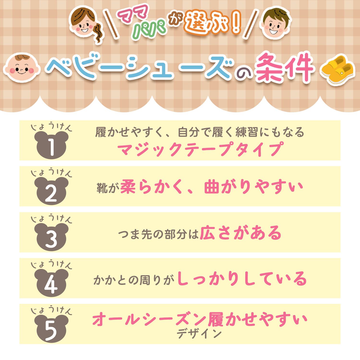 ママパパが選ぶ赤ちゃん期のシューズ条件をクリアした理想的なベビーシューズです!