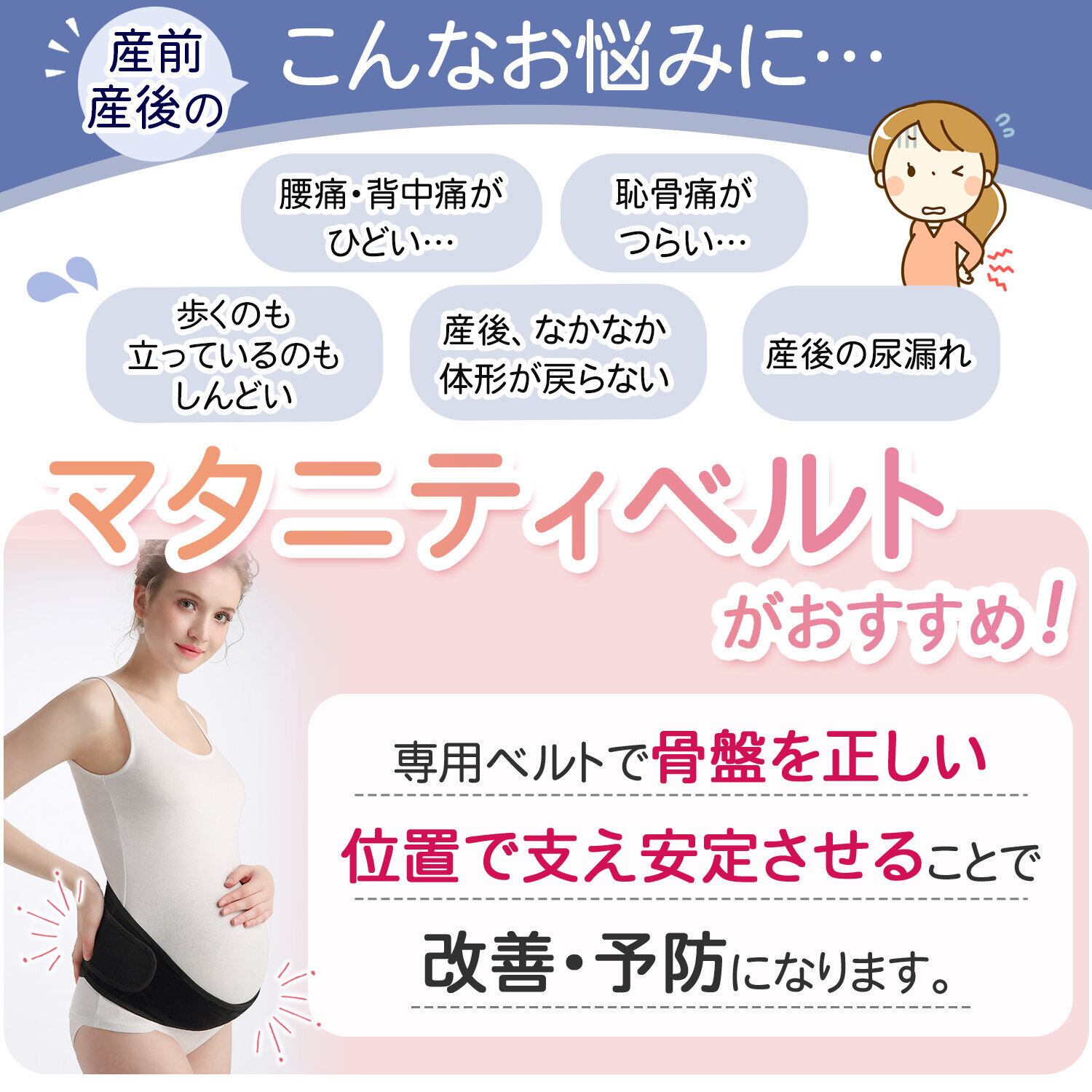 妊娠中の骨盤を支えて守るマタニティベルト。骨盤を正しい位置で固定することで腰痛や恥骨痛の改善が期待できます。産後に使用することで開いた骨盤を戻すサポートにもなります。
