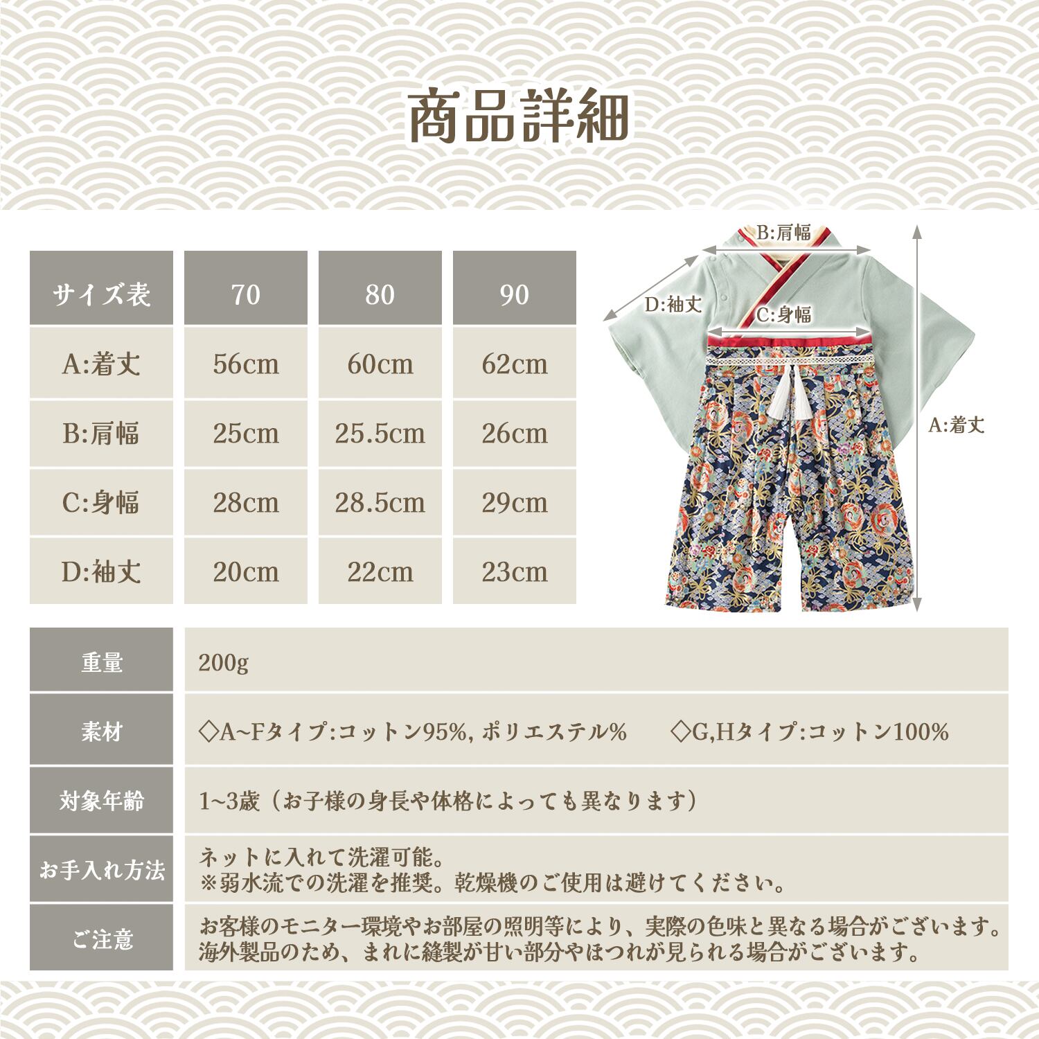 お食い初めや百日祝い・お宮参りなど1〜3歳のお子様のお祝い事にピッタリなベビー袴です。