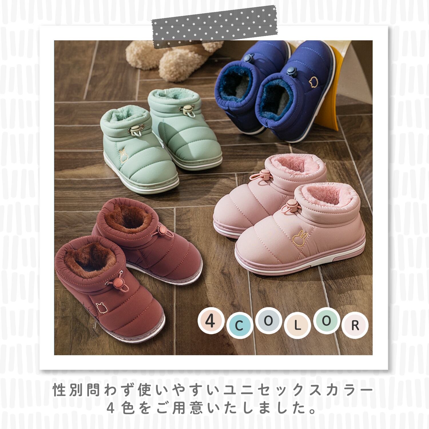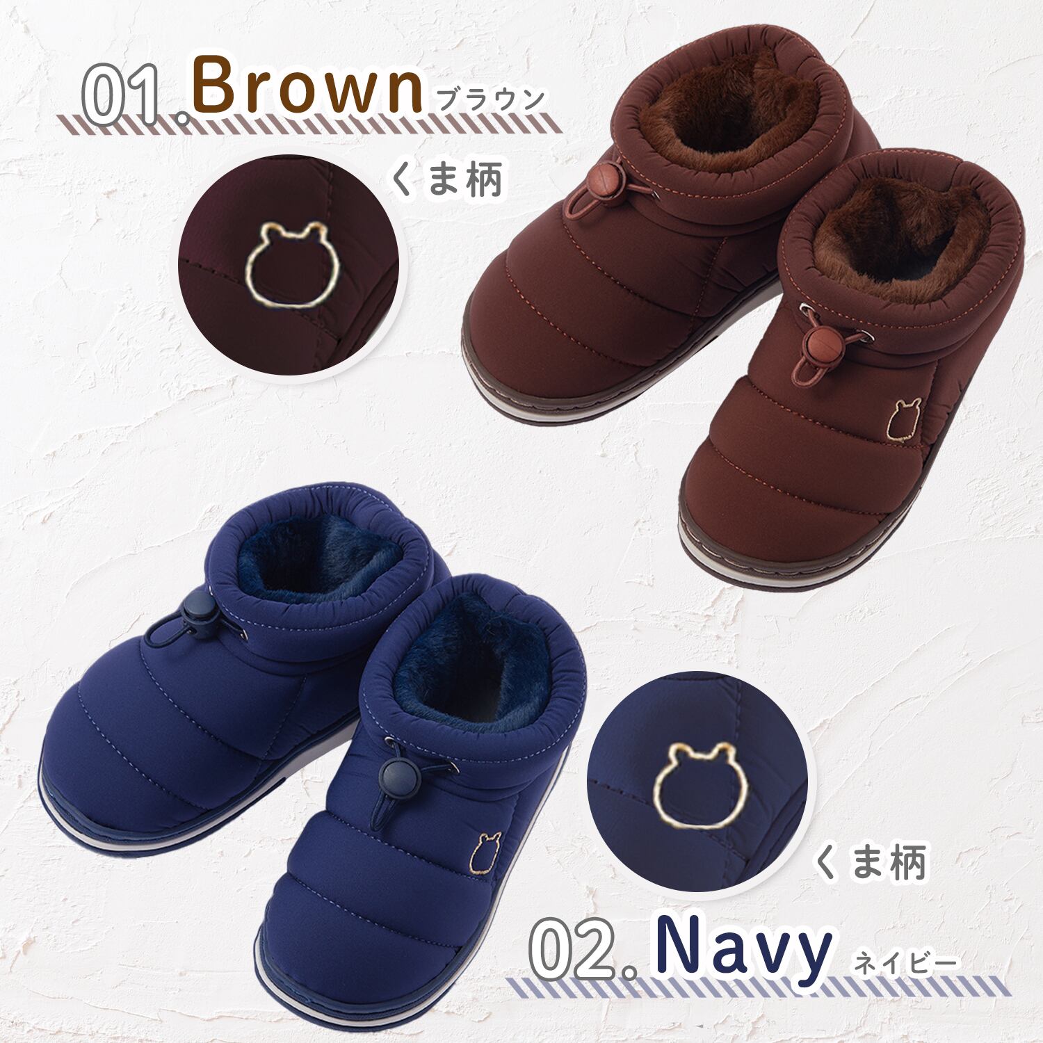 保温性に優れており履くと足がポカポカ。冬の底冷えからお子様を守ります。