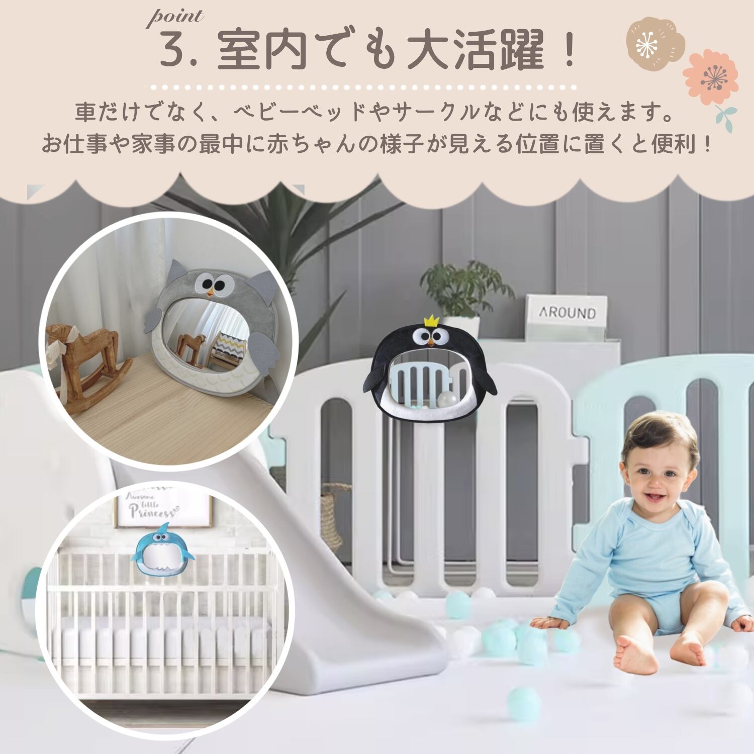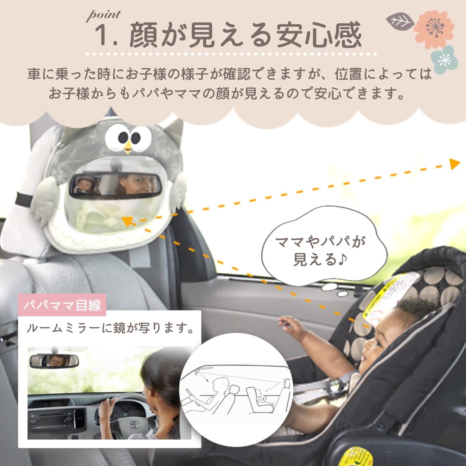 ママやパパが赤ちゃんを確認できるのはもちろん、位置によっては赤ちゃんからもママやパパがルームミラーに写って見えます。
