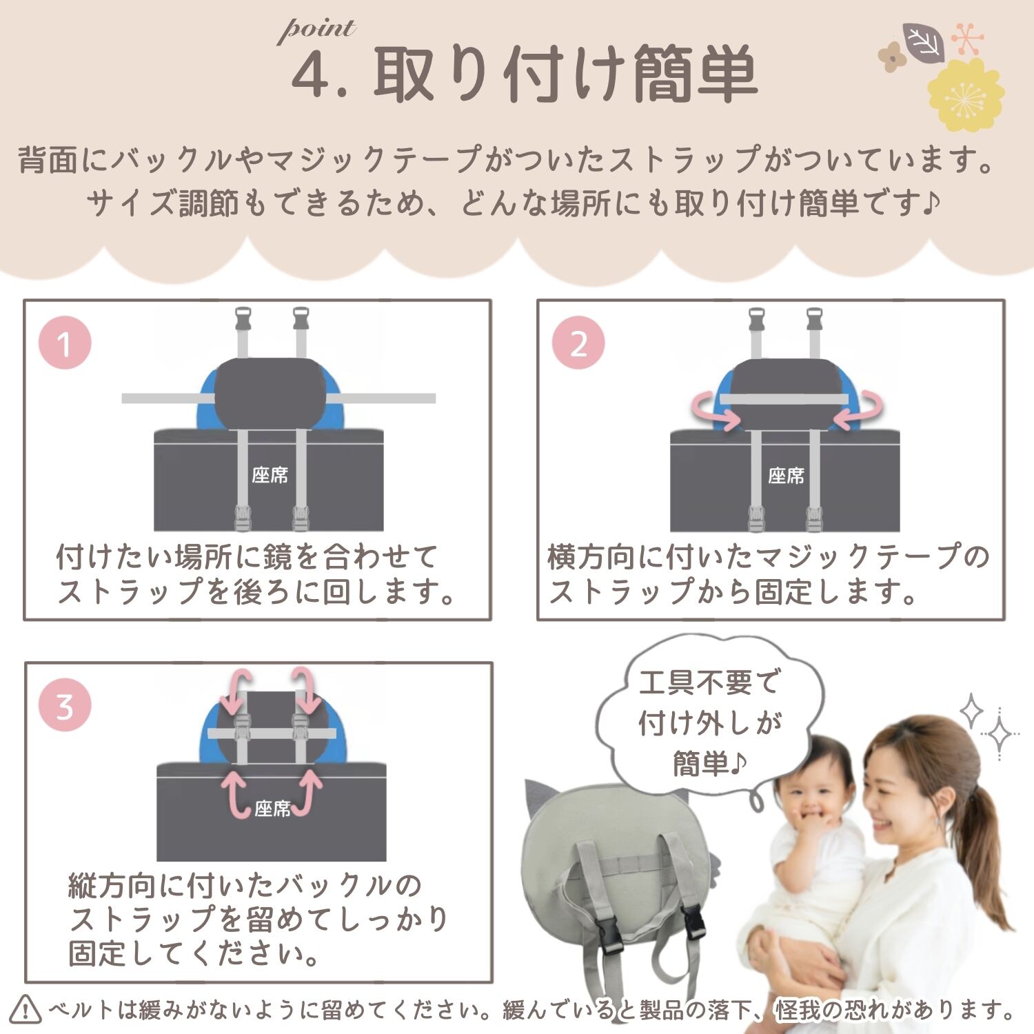 ベルトは緩みがないように留めてください。緩んでいると製品の落下、怪我の恐れがあります。