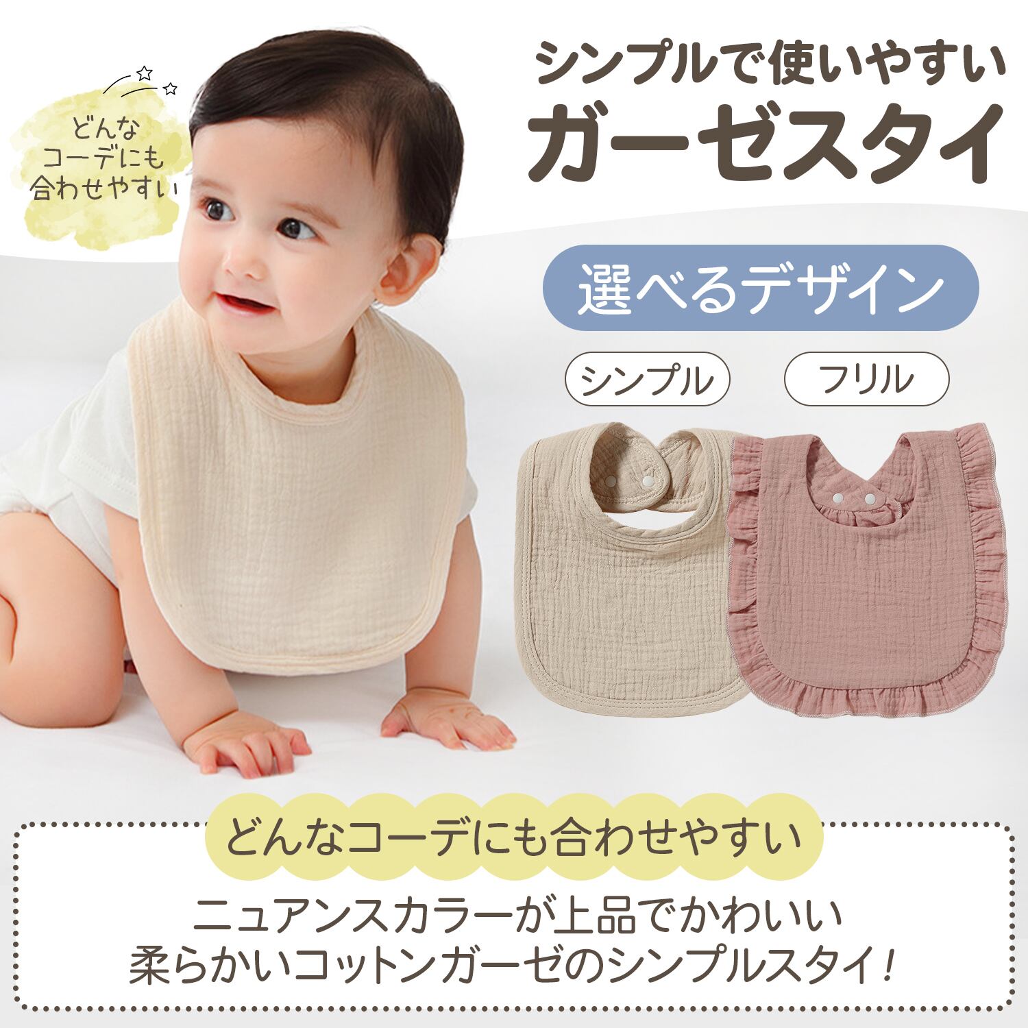 よだれや吐き戻しからお洋服を守る柔らかいコットンガーゼのシンプルスタイ。