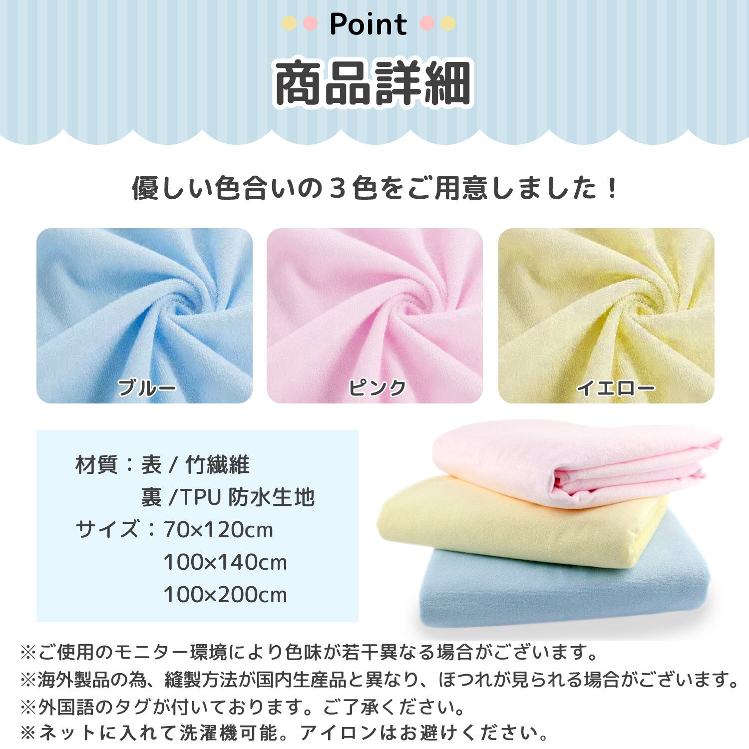 ネットに入れて洗濯機可能。アイロンはお避けください。