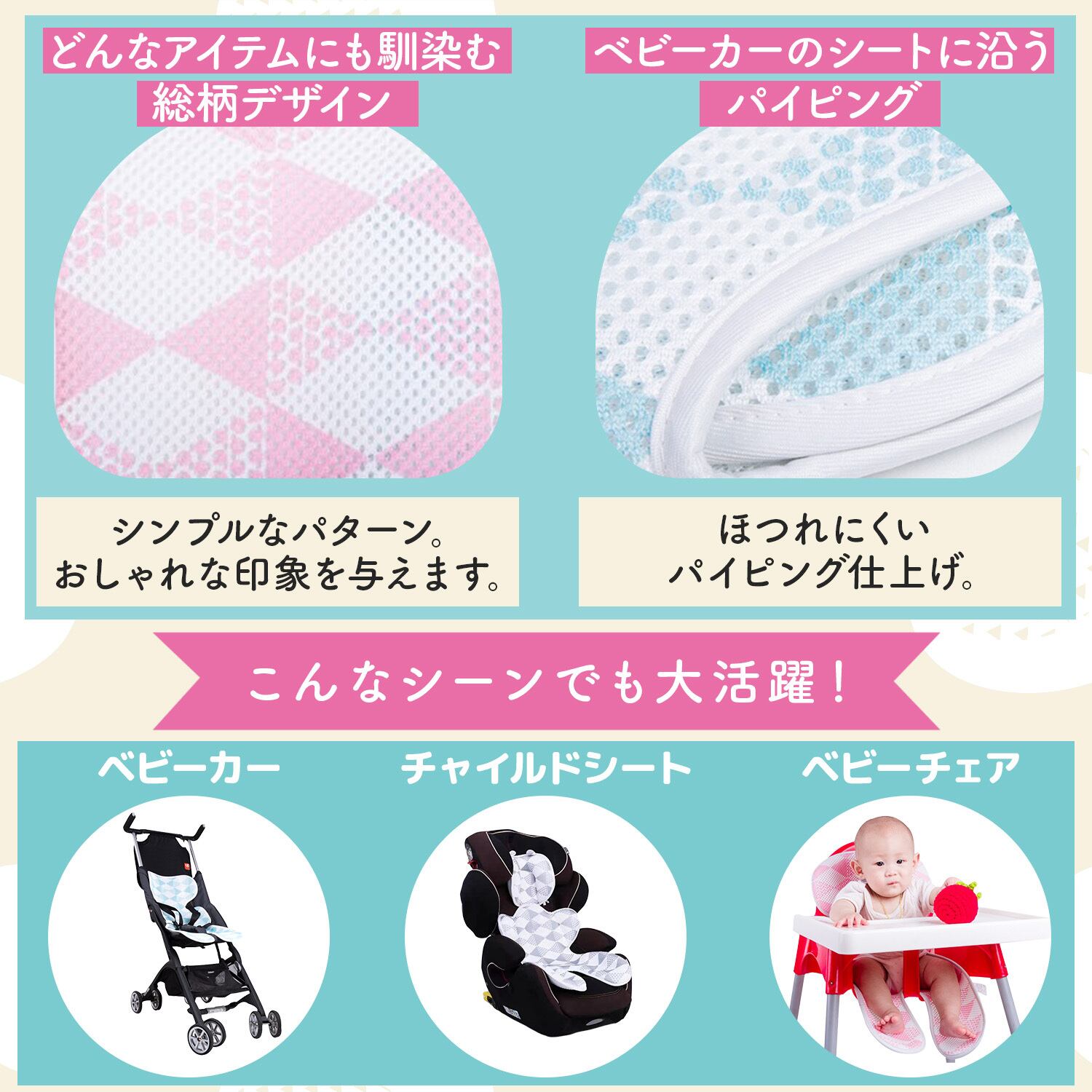 【メッシュ素材のベビーカーシート】