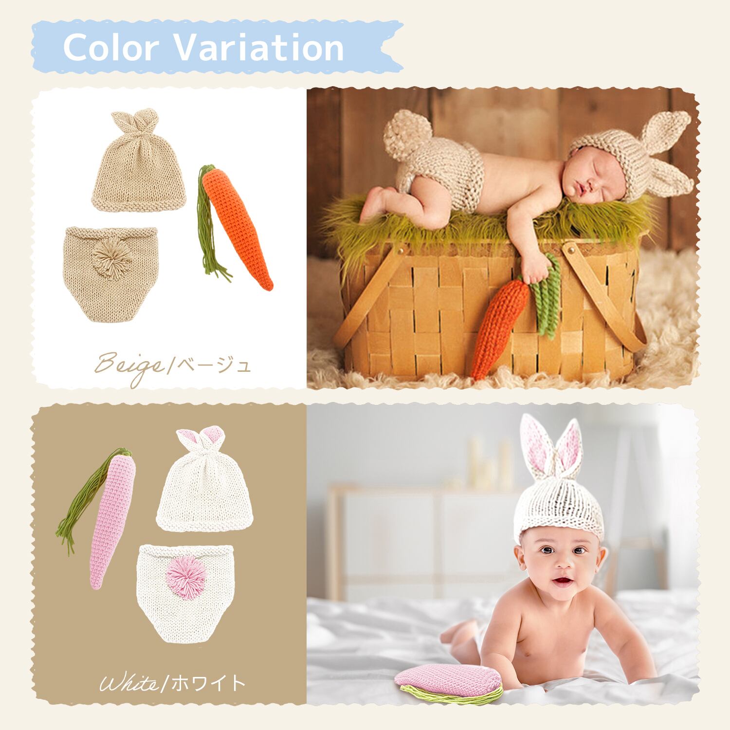 (うさ耳ニット帽、ボンボン付きパンツ、にんじん)