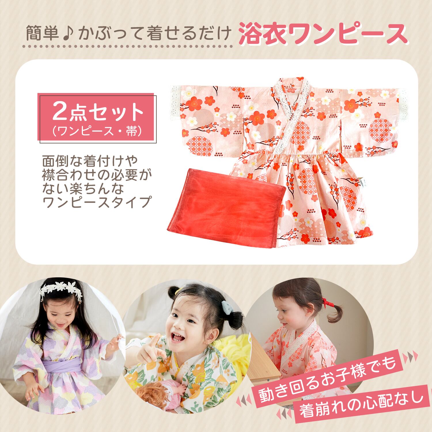 動き回るお子様でも着崩れの心配がありません。