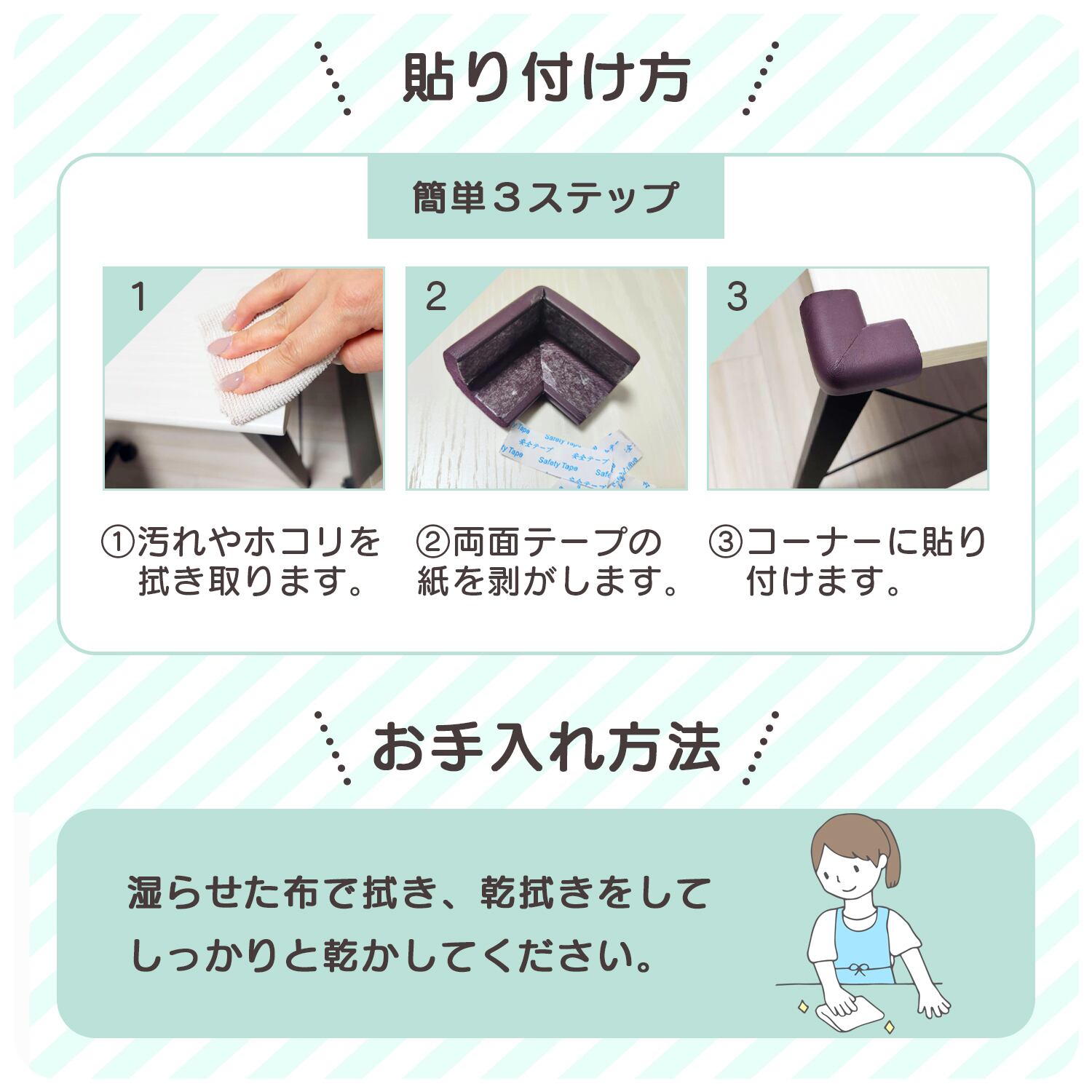 棚やテーブルの角につけることで、日常のヒヤリ場面からお子様を守ることが出来ます!
