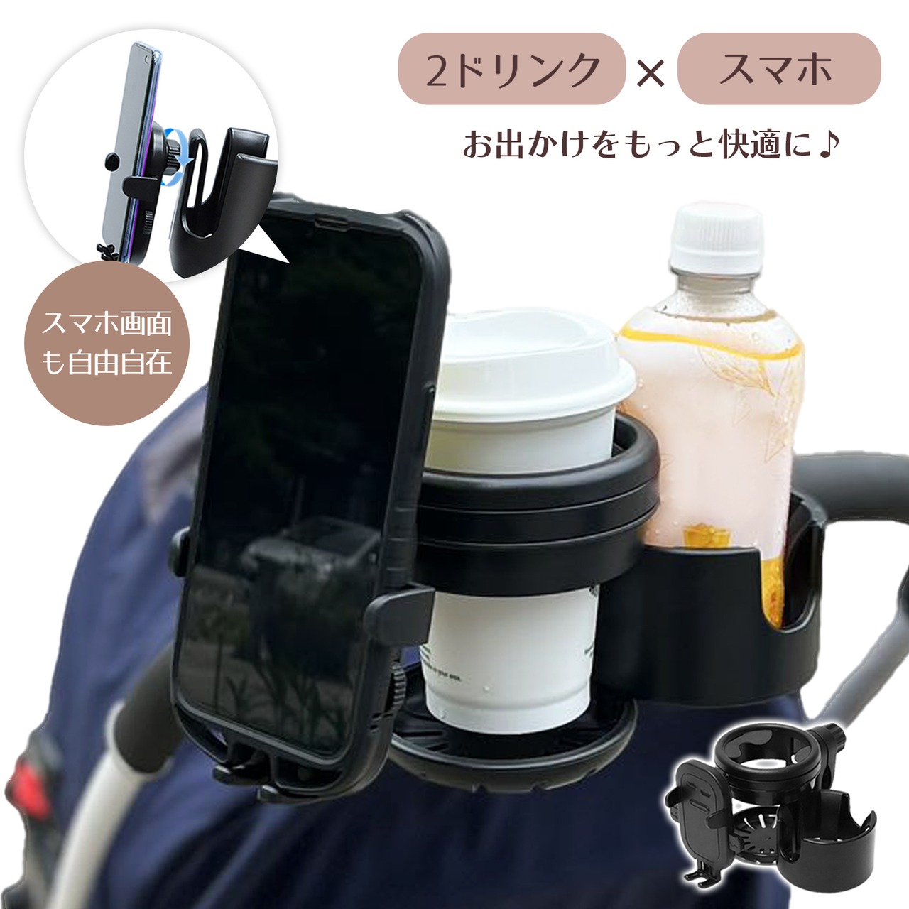 【2ドリンク+スマホ設置が可能なドリンクホルダー】