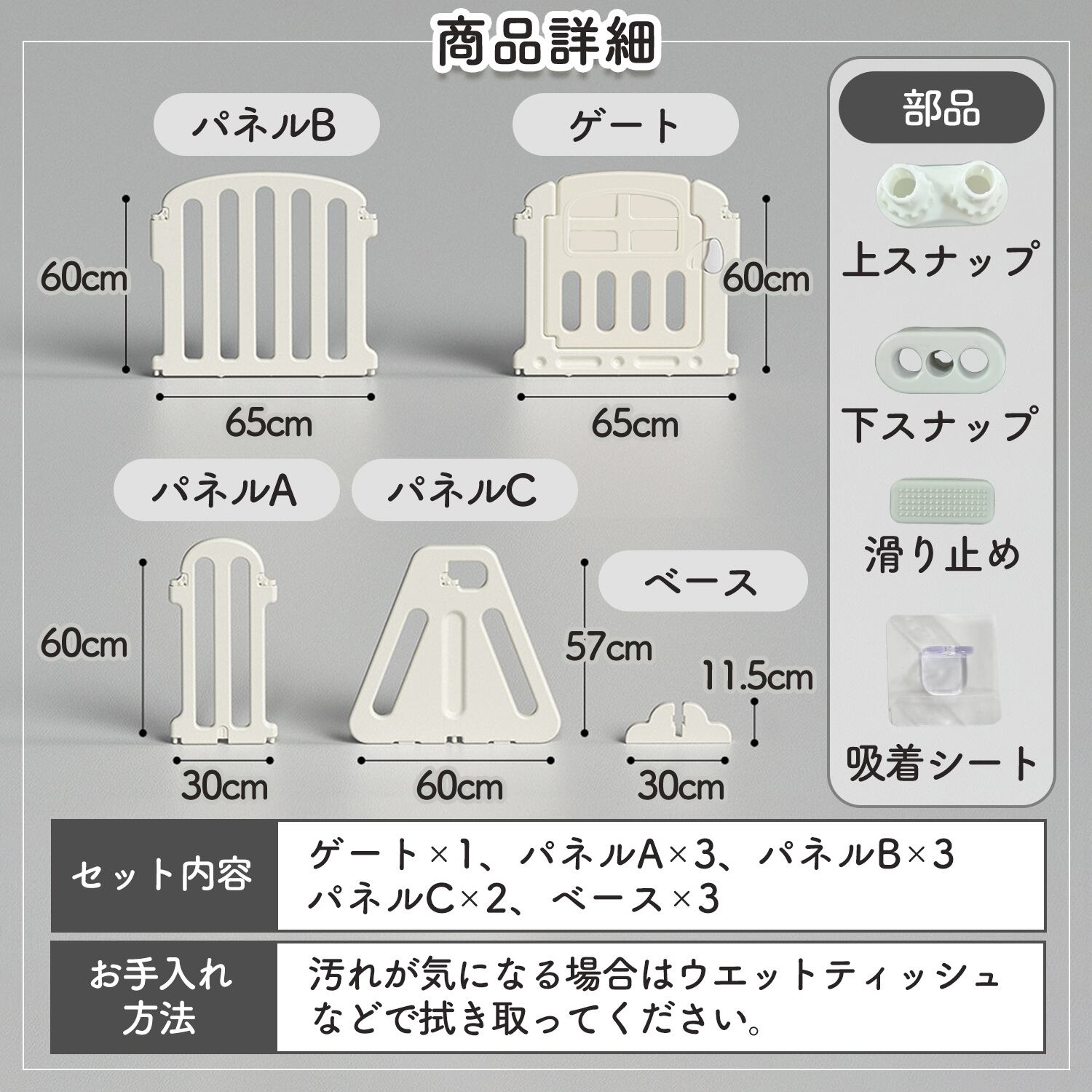 プレイエリアとして、危険エリアへの侵入を防ぐ仕切りとして、ご兄弟やペットと一緒にお住まいの赤ちゃんのセーフティーエリアとして、お昼寝スペースとしてなど幅広いシーンで活躍。
