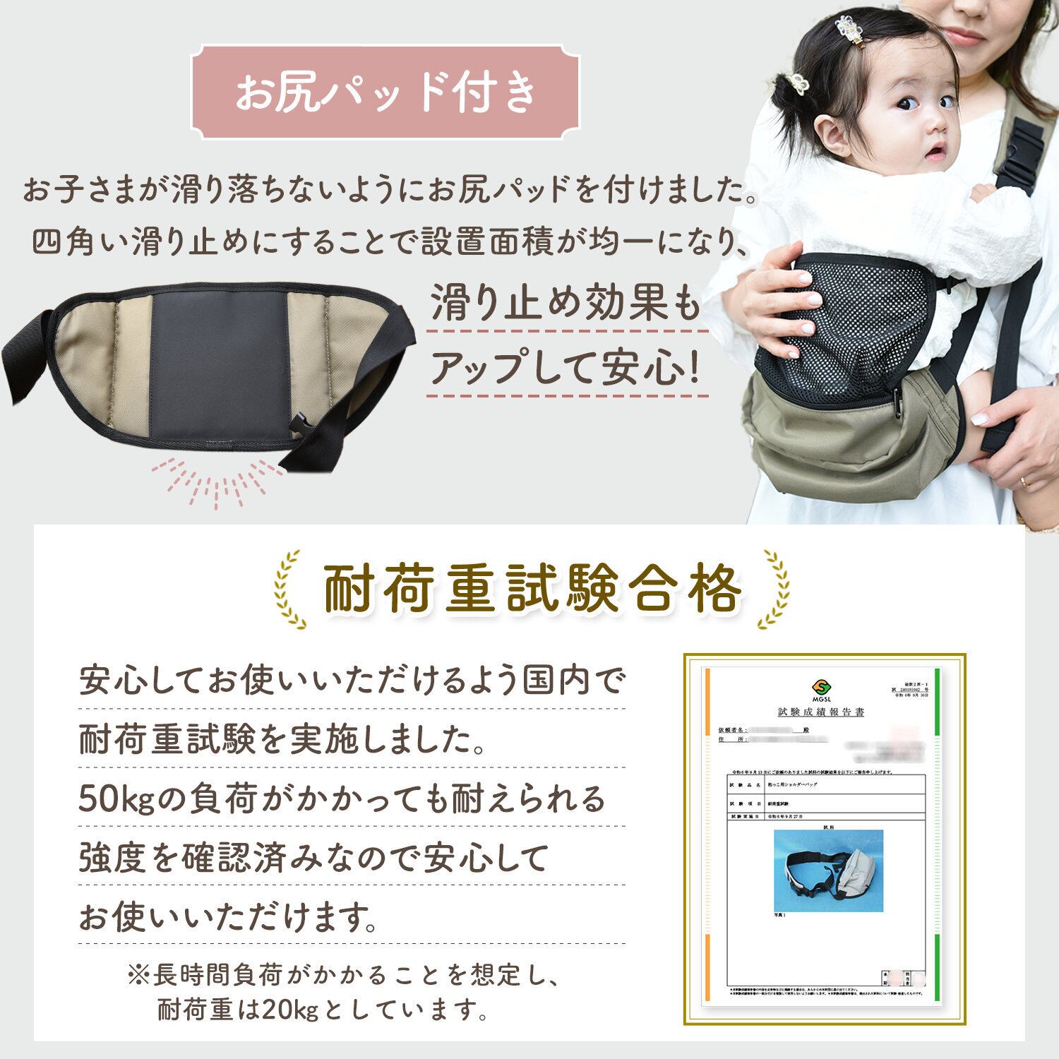 ・本製品は、腰の据わった時期から20kgまでのお子様に使用できます。お子様の体格には個人差があるので、使用者の身体への負担を考慮してご使用ください。
